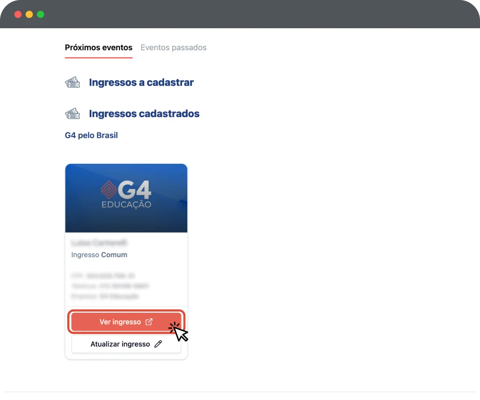 Esse será o ingresso que você irá utilizar para entrar no G4 Pelo Brasil.
