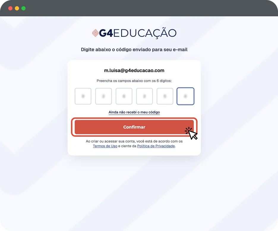 Você irá receber um código de confirmação. Informe o código e clique em